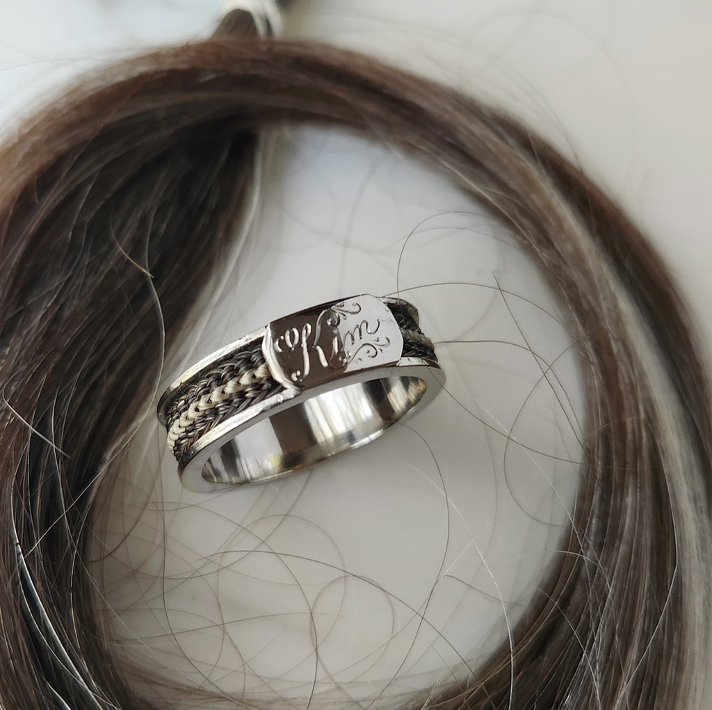 A simple ring inspired by the sentimental rings of the Victorian Era! The tightly braided hair is nestled into a channel ring so it can be worn daily. With proper care, this little keepsake will last for generations. Handcrafted in Portland OR.