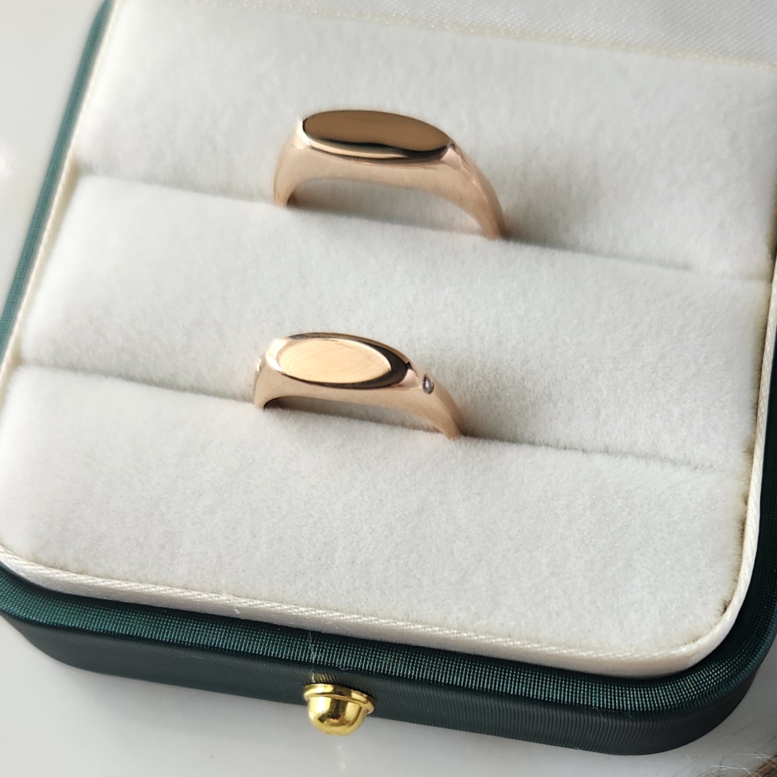 A classic ring design with a modern twist! This delicate ring is handcrafted with a secret glass compartment on the back for a tiny knot of your loved ones’ hair or fur. The flat signet surface is perfect for personalizing with initials or a name.